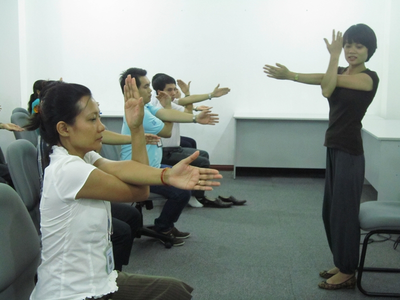 Việc tập Yoga vào buổi trưa rất tốt cho giới văn phòng vì buổi sáng thường là thời điểm bận rộn nhất và tiếp xúc nhiều với máy tính, ngồi lâu căng thẳng nên việc tận dụng thời gian buổi trưa để tập Yoga cũng giúp cho cơ thể chúng ta được thư giãn cả về thể chất lẫn tinh thần, để nạp lại năng lượng chuẩn bị cho công việc vào buổi chiều được tốt hơn.
